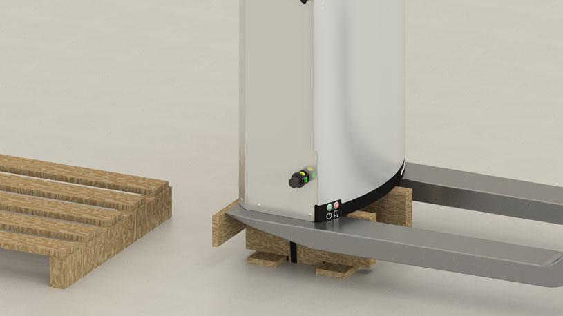Po ustawieniu w pozycji pionowej do ostatnich czynności montażowych można użyć wózka widłowego.