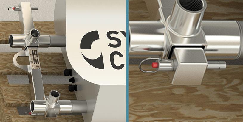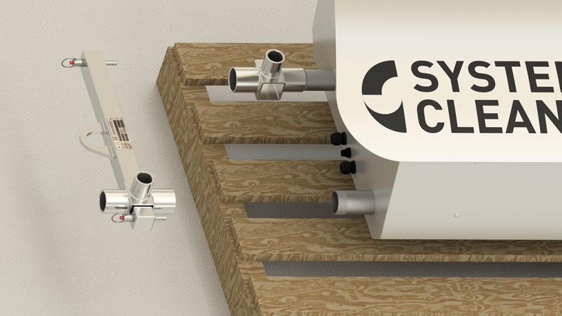 Nowe urządzenie System Cleaners jest dostarczane w pozycji leżącej na palecie. Aby zamontować go na uchwycie ściennym lub stojaku podłogowym, zalecamy użycie uchwytu do podnoszenia System Cleaners (nr art. 96-010500). Uchwyt do podnoszenia pasuje do rur wlotowych i wylotowych.