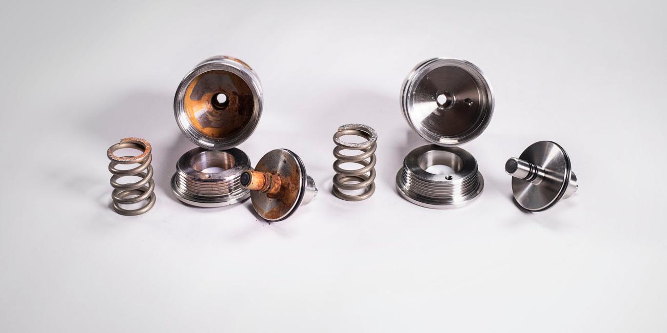Poniższy obrazek pokazuje różnicę między zaworem chemicznym, który został przepłukany po każdym użyciu, a takim, który nie został przepłukany. Przepłukanie wtryskiwacza po każdym użyciu przedłuży żywotność układu wtryskiwaczy.